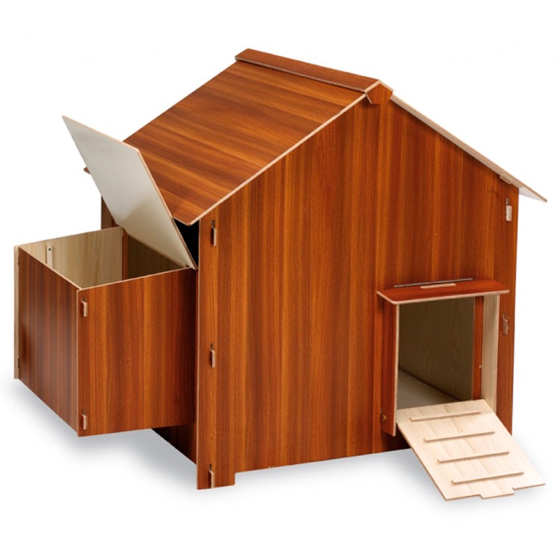 Caseta para gallinas y otras aves con rampa y acceso lateral para extraer fácilmente los huevos y permitir la limpieza de interna de la caseta.