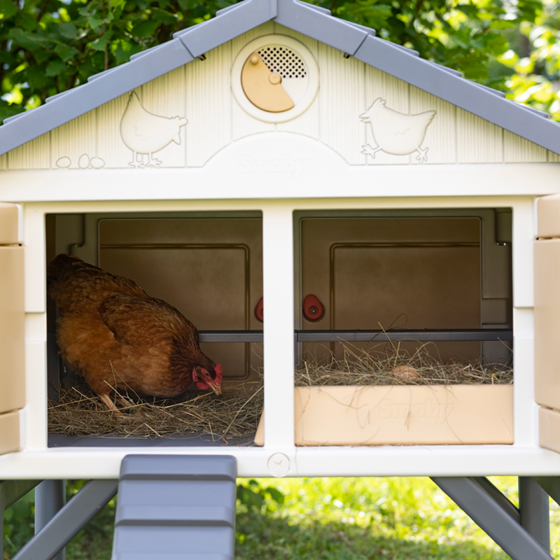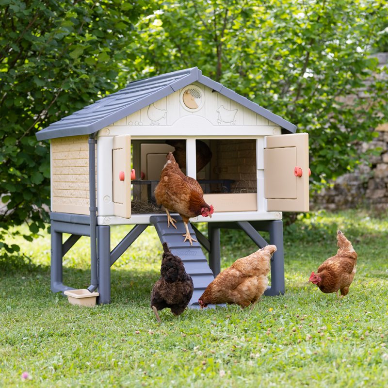 Gallinero de hobby familiar para que los más pequeños se inicien y ayuden en el cuidado diario de las aves. Ideal para 5 gallinas. Fabricado en plástico y con protección UV. Fácil mantenimiento y limpieza.