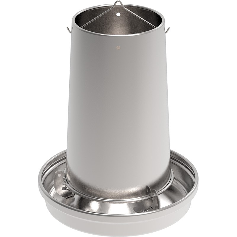 Tolva metálicas para gallinas fabricada en chapa galvanizada. Su resistencia permite un uso extensivo y de larga útil ya que son resistentes a la corrosión, a los impactos propios de su manipulación y la calidad de sus acabados plegados sin filos para evitar cualquier tipo de lesión para el granjero como para las animales.